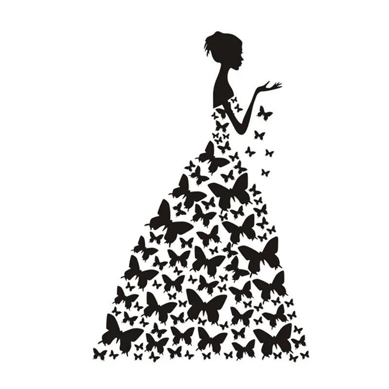 Cartoon Bride In Butterfly Wedding Dress Wall Stickers Animal Art