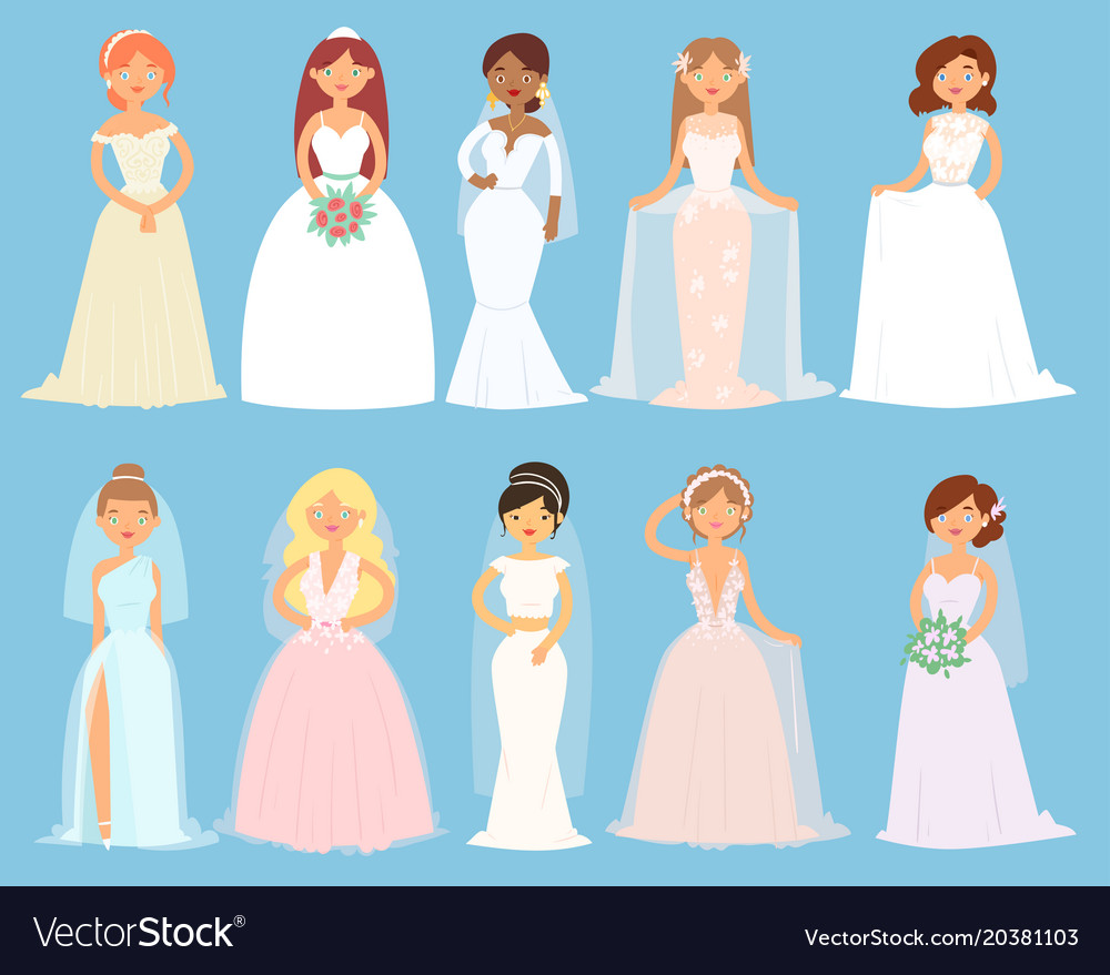 Wedding Brides Vector Girl Characters White Dress Illustration