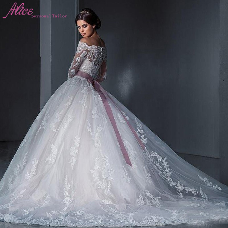 Ball Gown Tulle Lace Long Sleeves Off The Shoulder Royal Train