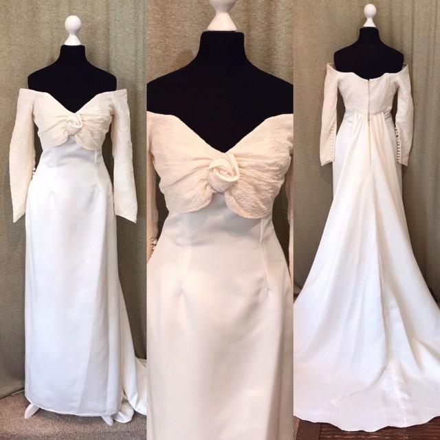 Long Sleeved Style Satin Wedding Dress With Royal Train Uk Sizes 4