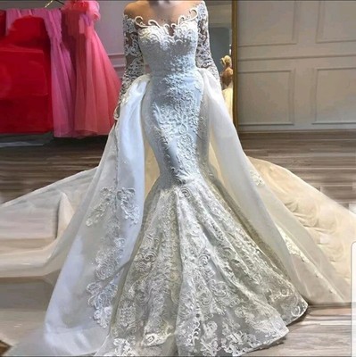 Uk White Ivory Long Sleeve Detachable Train Lace Mermaid Wedding
