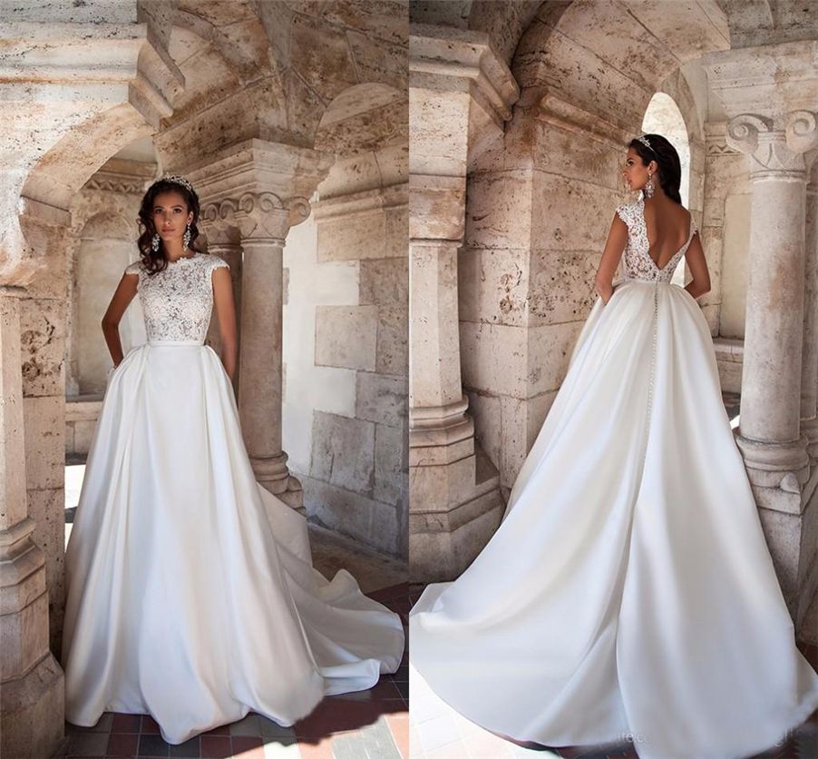 2020 Uk Elegant A Line Satin Long Train Plain Wedding Dresses