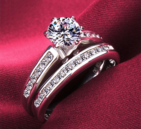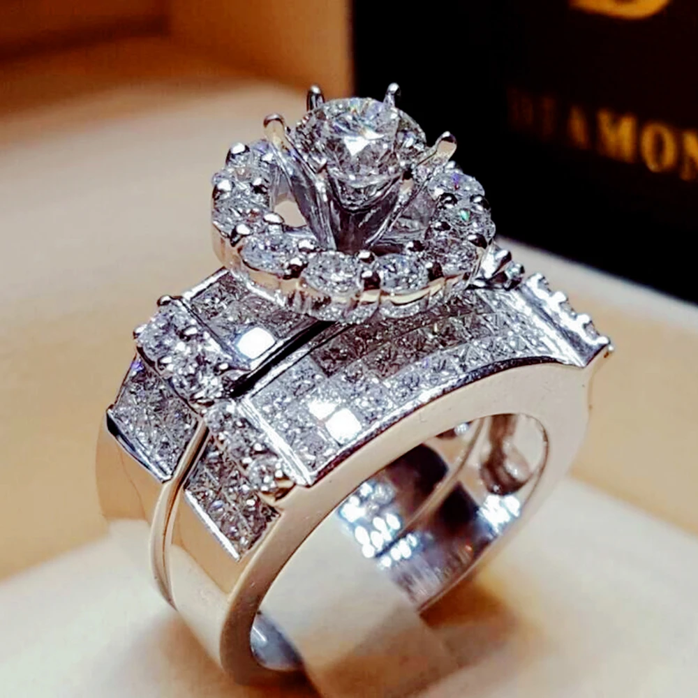 Female Crystal Zircon Wedding Ring Set Fashion White Gold Big