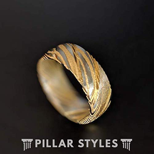Amazon Com 14k Gold Damascus Ring Mens Wedding Band Yellow Gold
